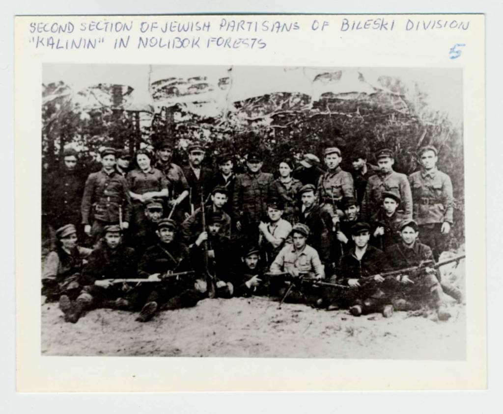 The Bielski group moves to a permanent base in the Naliboki forest, which is under control of Soviet partisans. The Bielski camp becomes a vital maintenance base for the Soviet partisans. Receiving weapons from partisan headquarters, members of the Bielski group carry out operational missions, attacking Belorussian policemen as well as local farmers suspected of killing Jews. They disable German trains, blow up rail beds and destroy bridges. Throughout the war, they continue to facilitate escapes from local ghettos. At the time of liberation, the group consists of 1,230 Jews and has killed 381 enemies.