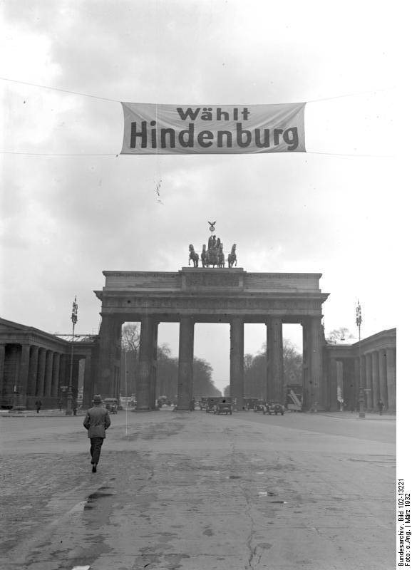 First round of the second (and last) presidential election of the Weimar Republic. The five candidates are Paul Von Hindenburg (independent) who scores 49.6% of the votes; Adolf Hitler (NSDAP-Nazi Party) who scores 30.2%; Ernst Thälmann (KPD-Communist Party) 13.2%; Theodor Düsterberg (Stahlhelm, Bund der Frontsoldaten) 6.8% and Gustav A. Winter (Inflationsgeschädigte) 0.3%. Since no candidate managed to secure an absolute majority, a second round is planned.