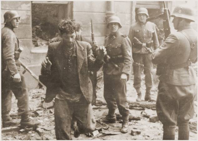 The Warsaw Ghetto uprising begins as Germans attempt to liquidate its 70,000 inhabitants. The Waffen-SS surrounds the ghetto with their tanks and guns, expecting to finish their task quickly. The Jews of the ghetto, led by Mordechai Anielewicz, hold out for 43 days until the Nazis burn the entire ghetto to ashes, killing about 13,000 Jews in total. Most of the remaining Jews are deported to concentration camps.